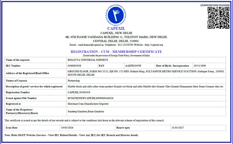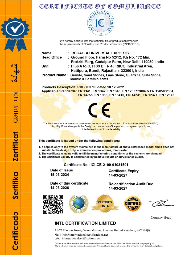 We “Regatta Tiles” are one of the largest manufactures & exporters of ceramic, porcelain/vitrified tiles along with natural marbles and granites in India. With our precise work and delivering just the best for which our packaging says it all, we are happily and successfully exporting to more than 60 countries to our happy clients. We at Regatta strive to deliver quality products and services to our customers. Our team of experts work around the clock to ensure that the quality of our product is never compromised. Our vision lays the platform for innovation and your feedback serves as proving grounds for us to re-create excellence on new terms.